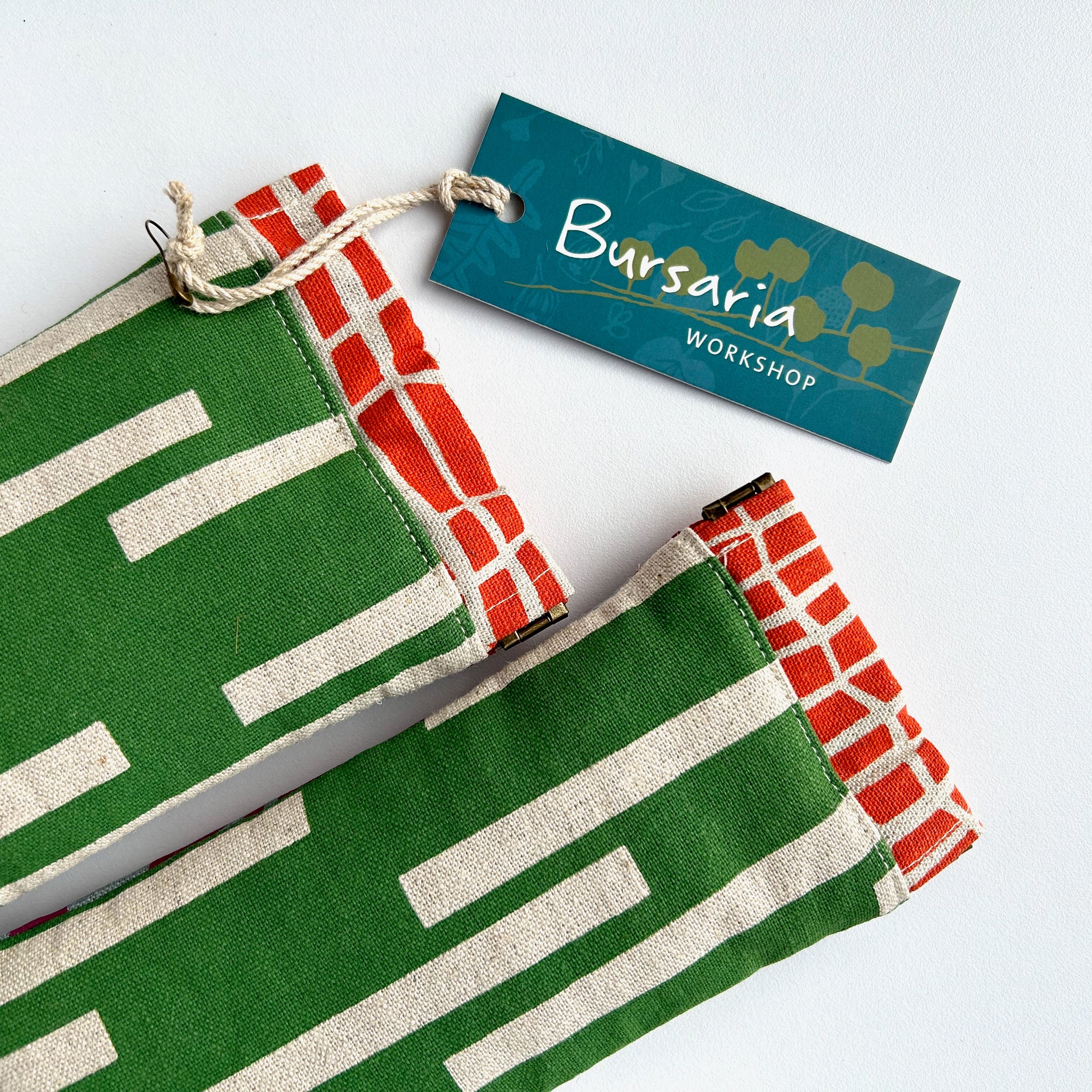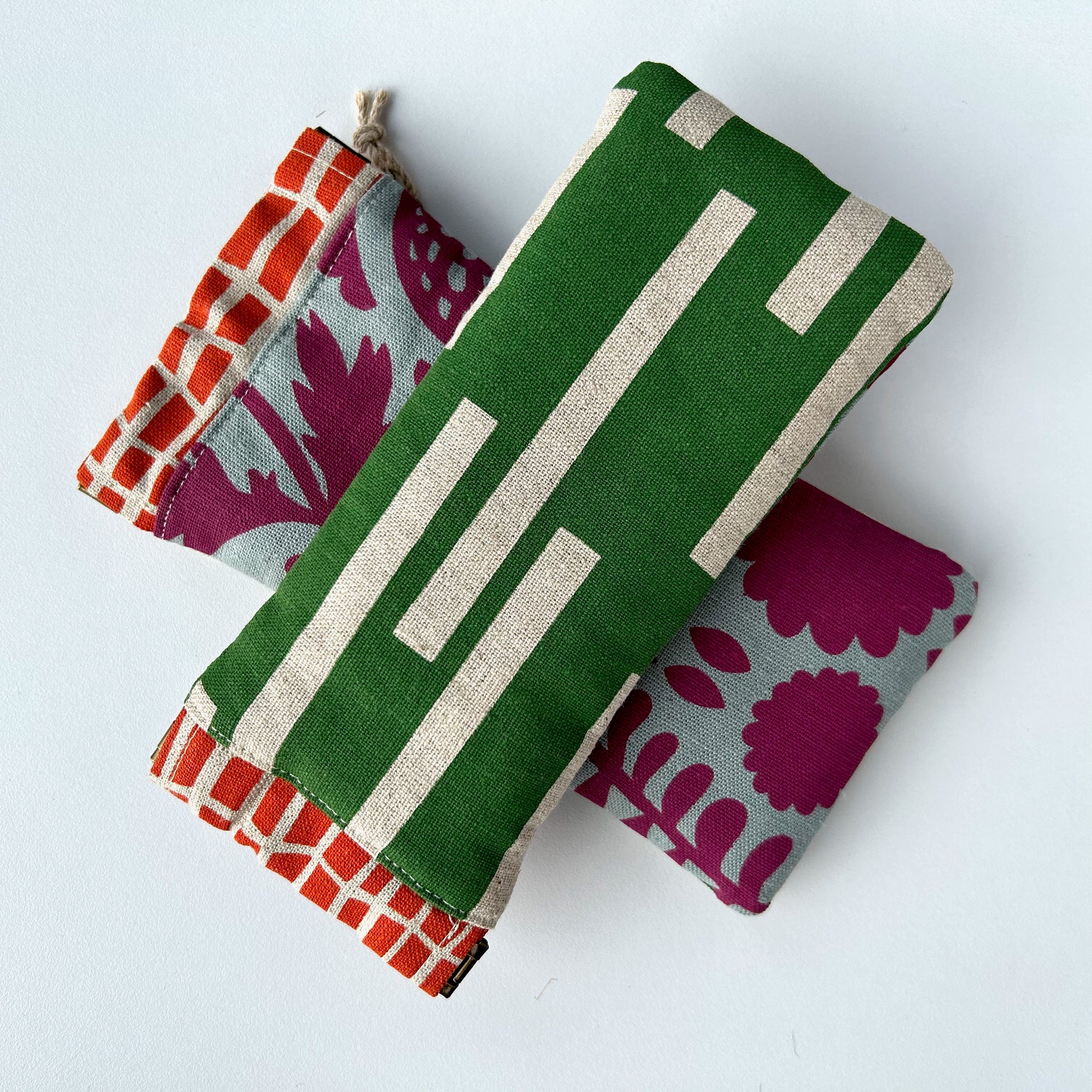 Screen printed by hand on organic hemp/cotton, these flex-closure glasses cases are really great for keeping your glasses scratch-free. Lined with natural linen, they have a double layer of cotton wadding inside for extra protection.