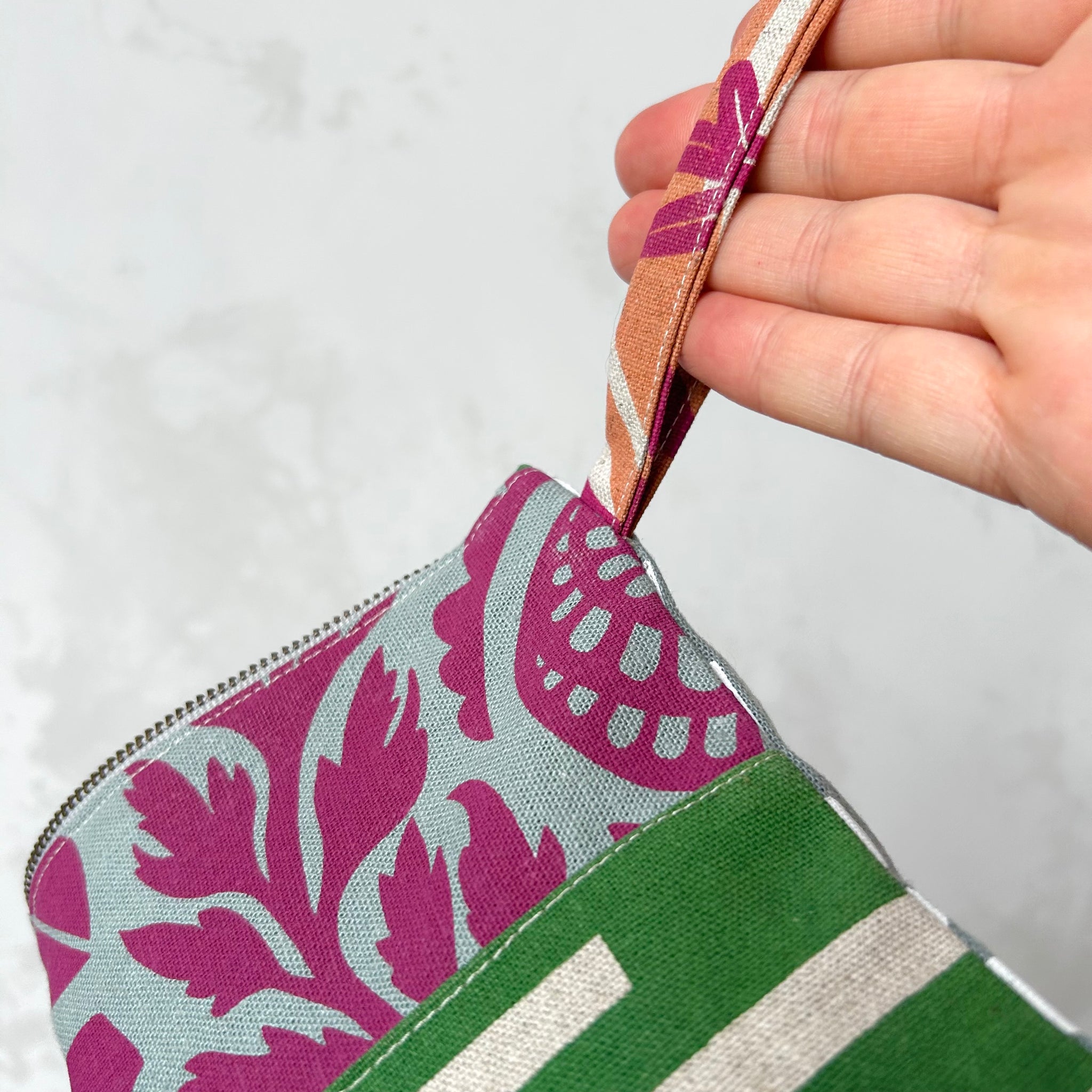 This super-sturdy zip purse is just right for keeping things tidy inside your bag or as a stand-alone purse. It has a fabric loop handle on one side for easy carrying when you feel like showing it off.