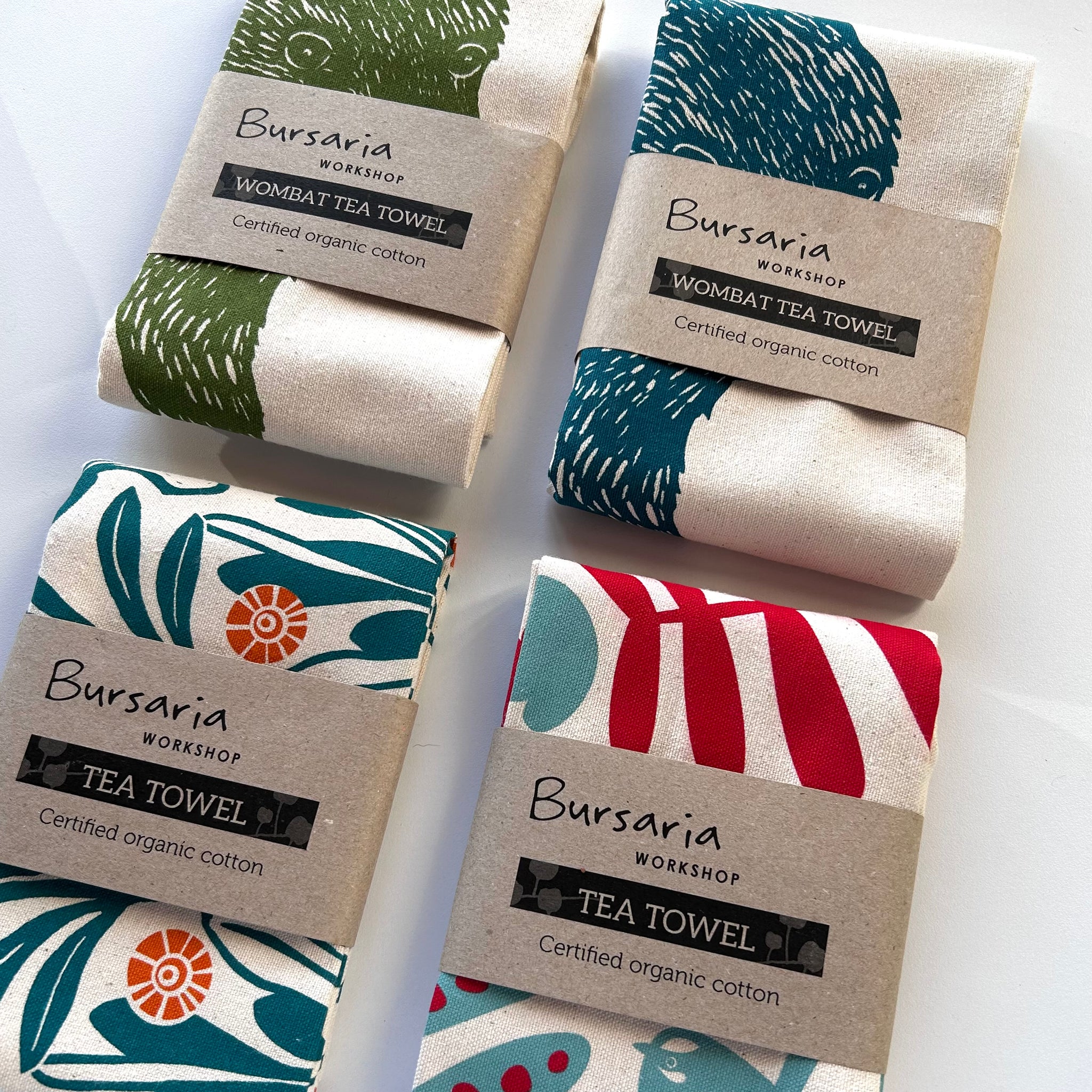 1 x green wombat, 1 x turquoise wombat, 1 x Fronds & Flowers, 1 x Bouquet